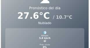 📍 Neuquén Capital📅 Miércoles 11 de Marzo ☁️ Pronóstico del día 31.2°C / 19.9°C Nublado 💨 Ráfagas 20.5 km/h ☔ Prob. Lluvia 5% ☀️ Índice UV 6.65 Este Miércoles 11 de Marzo, Neuquén Capital experimentará una jornada con temperaturas agradables, según informan los registros meteorológicos oficiales. La máxima pronosticada alcanzará …
