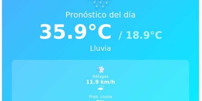 La temperatura máxima alcanzará los 35.9°C, mientras que la mínima se registrará en 18.9°C. Se prevé cielo con lluvia a lo largo del día, lo que podría traer alivio a las altas temperaturas pero también posibles interrupciones en las actividades al aire libre. El índice UV se encuentra en 8.3, considerado muy alto.