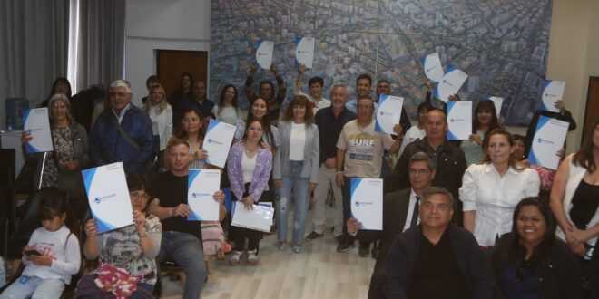 En un acto encabezado por el secretario de Gobierno y Coordinación, Juan Martín Hurtado, y la secretaria de Jefatura de Gabinete, María Pasqualini, se entregaron 17 boletos de compraventa y 7 escrituras a familias de diferentes sectores de Neuquén. Esta iniciativa forma parte del proceso de regularización dominial promovido por la administración del intendente Mariano Gaido, con el objetivo de proporcionar seguridad jurídica y ordenar la documentación de terrenos municipales ocupados.