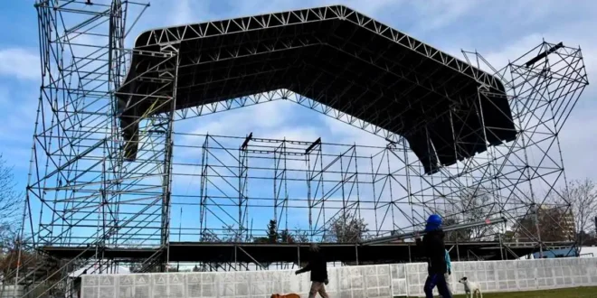 Instalación de puentes sanitarios para la Fiesta de la Confluencia 2026.