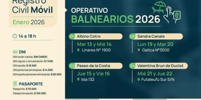 Durante las próximas dos semanas de enero, el Registro Civil de Neuquén llevará a cabo un operativo especial que permitirá a los ciudadanos gestionar trámites de DNI y pasaportes en un registro móvil que recorrerá los balnearios de la ciudad. Esta iniciativa, impulsada por el Ministerio de Gobierno, Mujeres y Derechos Humanos, busca facilitar el acceso a servicios esenciales durante la temporada estival.